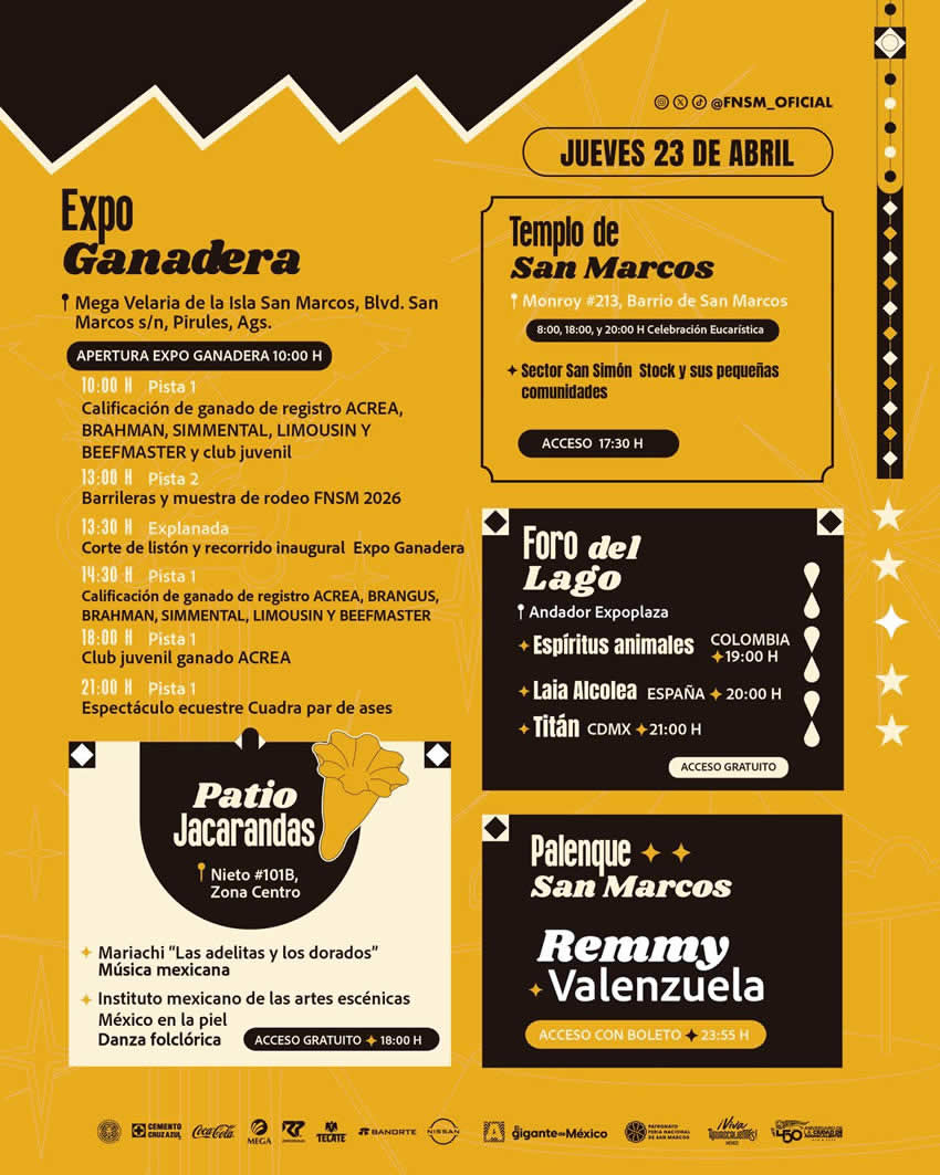Agenda: Los Esperamos del 18 de Abril al 10 de Mayo en la Feria Nacional de San Marcos Abr 23, 2026 | Local La Mejor Feria de México
