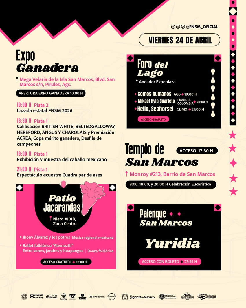 Te Compartimos las Actividades de la Feria Nacional de San Marcos Para Este 24 de Abril Abr 24, 2026 | Local
